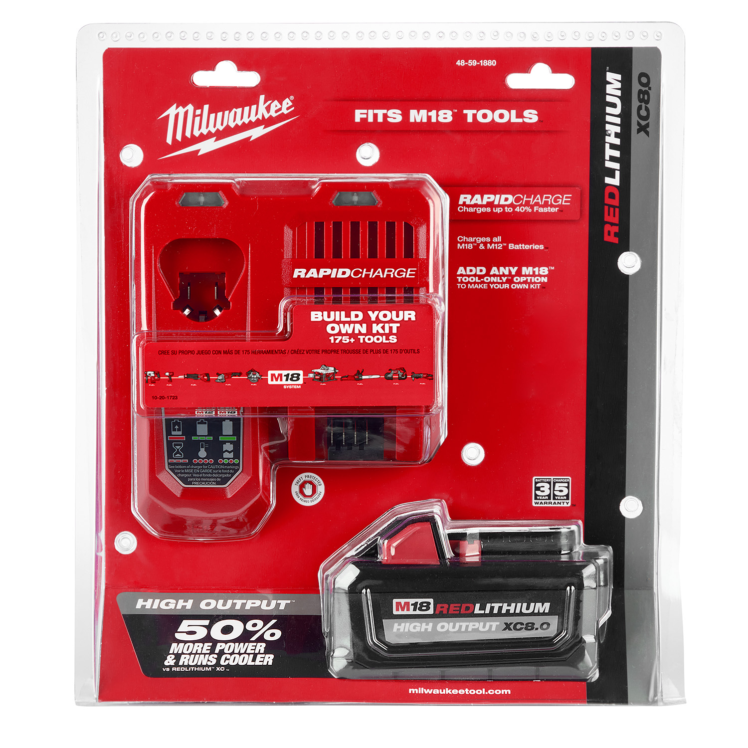 Mejora el Rendimiento de tus equipos de Milwaukee en un 50% más con este nuevo KIT de cargador Rápido de 220V (Para baterias M12 y M18) y la súper batería M18 de 8.0 AH (High Output – Alta Demanda). La batería se carga en tan solo 83 minutos y tiene garantia de fábrica de 3 años la batería y 5 años el cargador.
